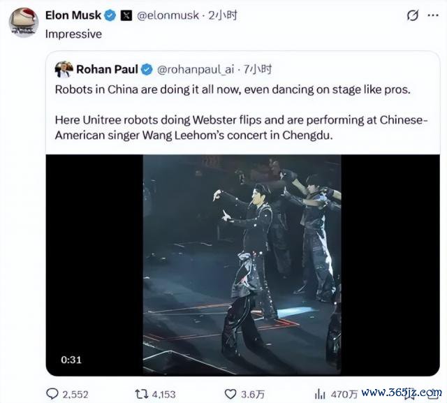 他在 X 平台上也瞅见了宇树机器东谈主们的后空翻,不仅给了一个大大的赞,还配上 "Impressive"(令东谈主印象深化)的批驳,拉上国外 4000 万吃瓜寰球一谈看戏。